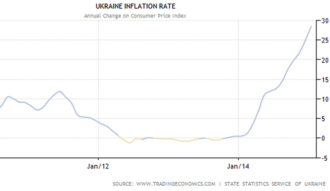 Such currency weakness will sharply exacerbate Ukraine's inflation, which is already running close to 30%.